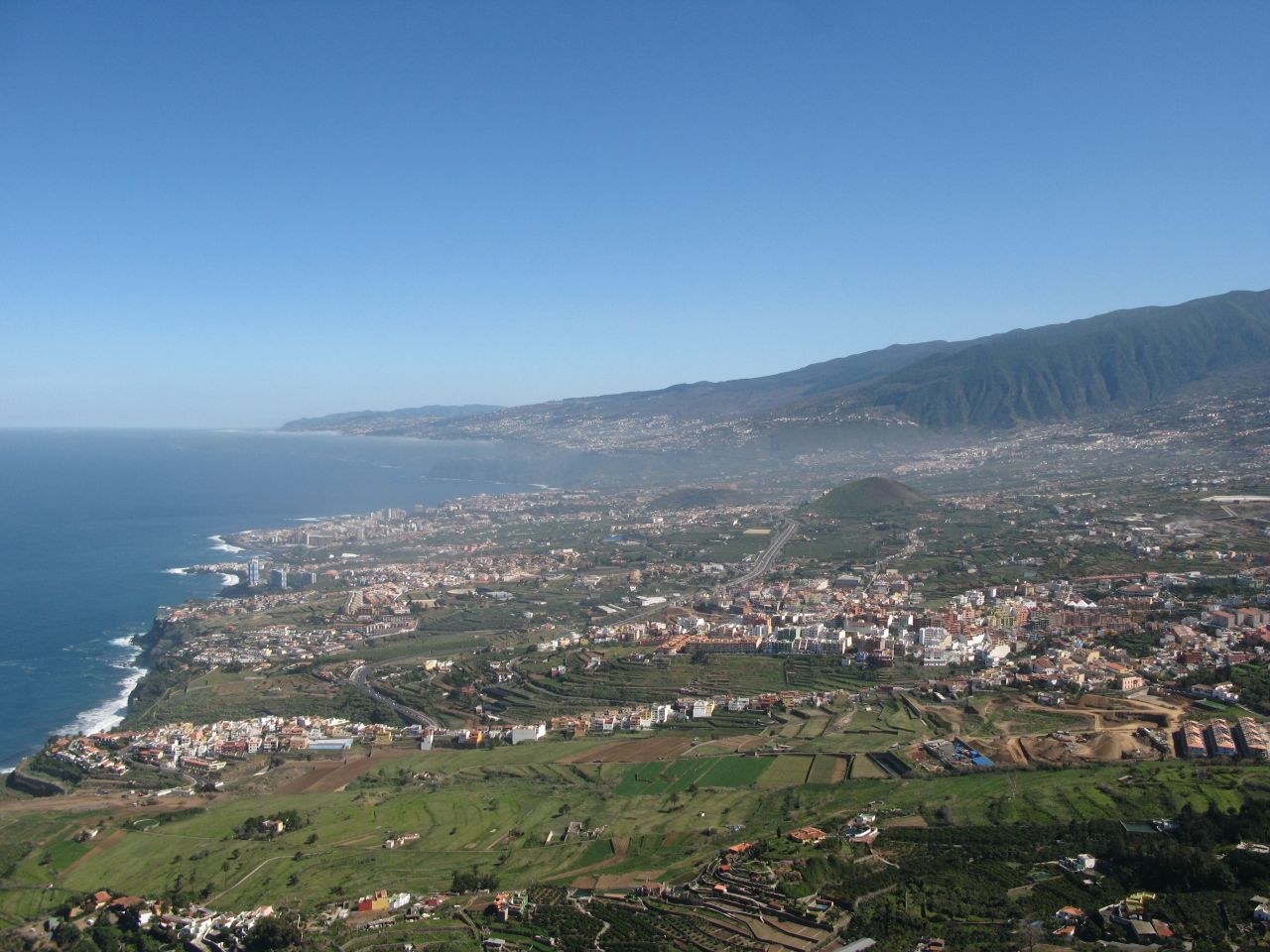 Das bild links wurde vom west hang aus geschossen und blickt richtung osten, zeigt also das valley selbst und einen teil des ost hanges. Man kann auch die autopista-norte (TF5) und Pürto del la Cruz erkennen. typisch auch der tief hängende nebel.